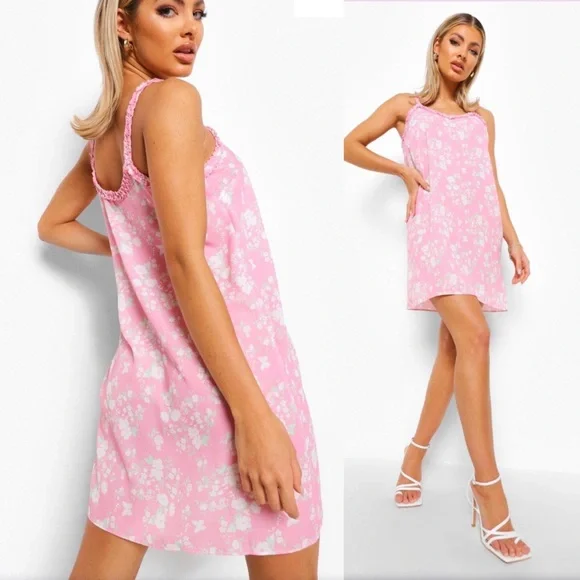 Https Poshmark Com Listing Womens Boohoo Pink Dress Size 6 Floral Frill Strappy Slip 641a033c02760b0cd2282316
